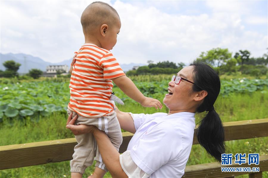 出诊结束后,江凤英和村民家的孩子玩耍。