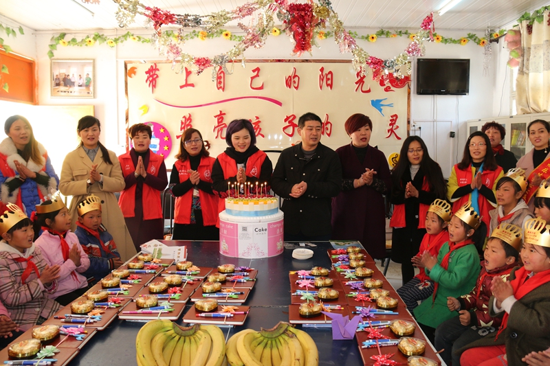 王存飞为席郑小学32名留守儿童过生日。图片来源:蒙城文明网