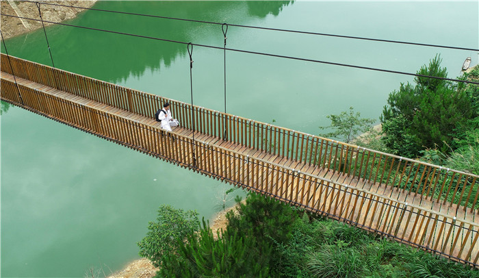 村里建了一座便民铁索桥