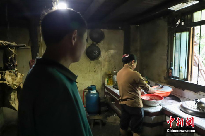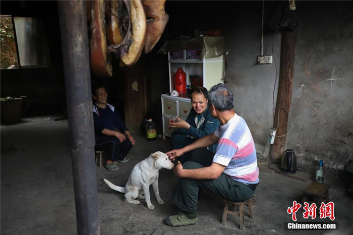 张林昌在村民家休息聊家常。中新社发 瞿宏伦 摄