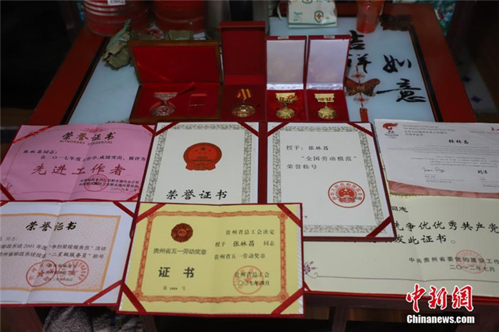 多年来张林昌所获荣誉证书。中新社发 瞿宏伦 摄
