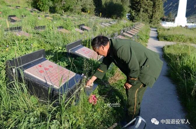 陈俊贵在清扫烈士陵园。图片来源:《中国退役军人》杂志
