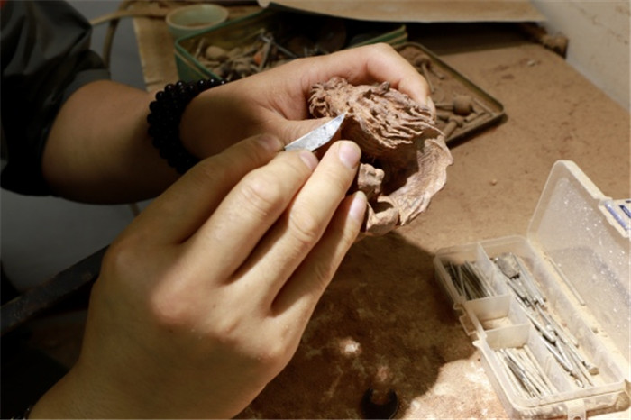 多年前,李宝峰决定重拾这门技艺。“我还清晰记得自己卖出第一件木雕时的心情,当时第一反应就是,终于有钱买更好的工具了。”李宝峰说,虽然钱不多,但被人认可感到很开心。