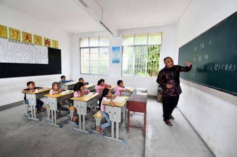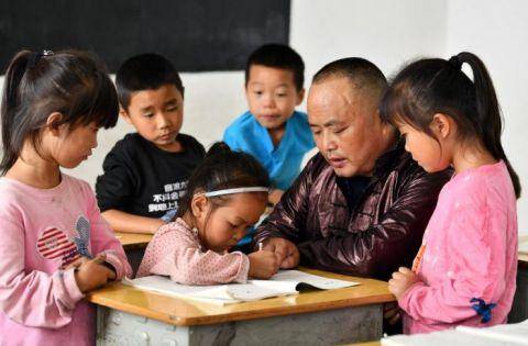 9月8日,贵州省榕江县忠诚镇苗本小学的教师滚录权给学生上语文课。新华社记者 杨文斌 摄