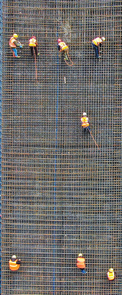 | 2月23日,在贵州省毕节市七星关区田坝镇盘挪河村,工人在夹岩水利枢纽工程施工现场作业。 苏 滨 谢文娟摄影报道 |