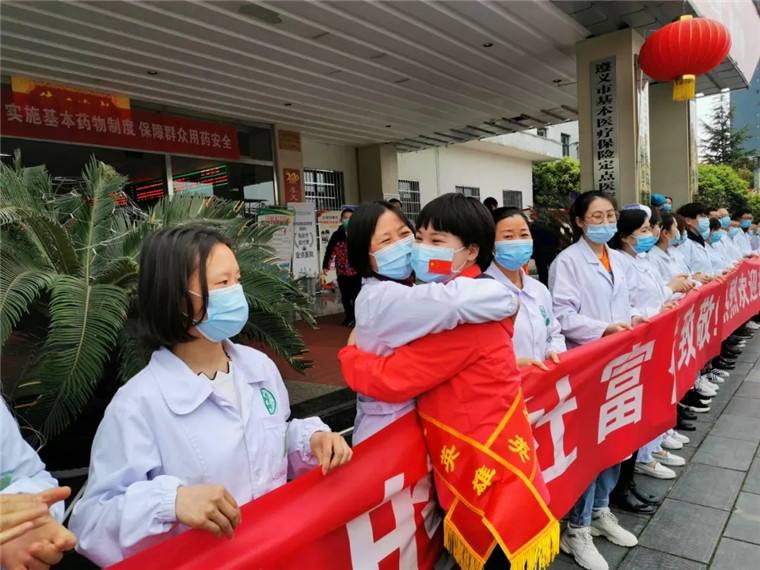 杜富佳结束援鄂抗疫工作任务回到家乡,湄潭县人民医院的同事欢迎她平安归来。