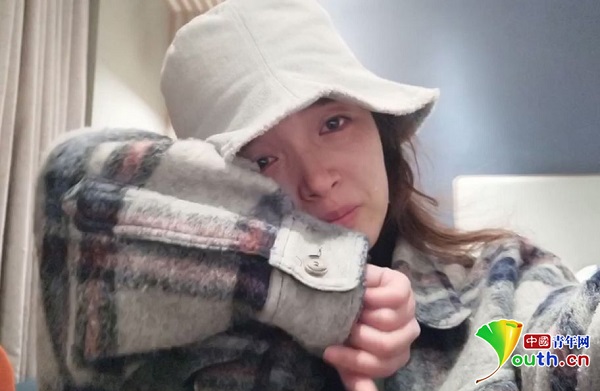 曹元元在视频中哽咽讲述回国经历。受访者供图