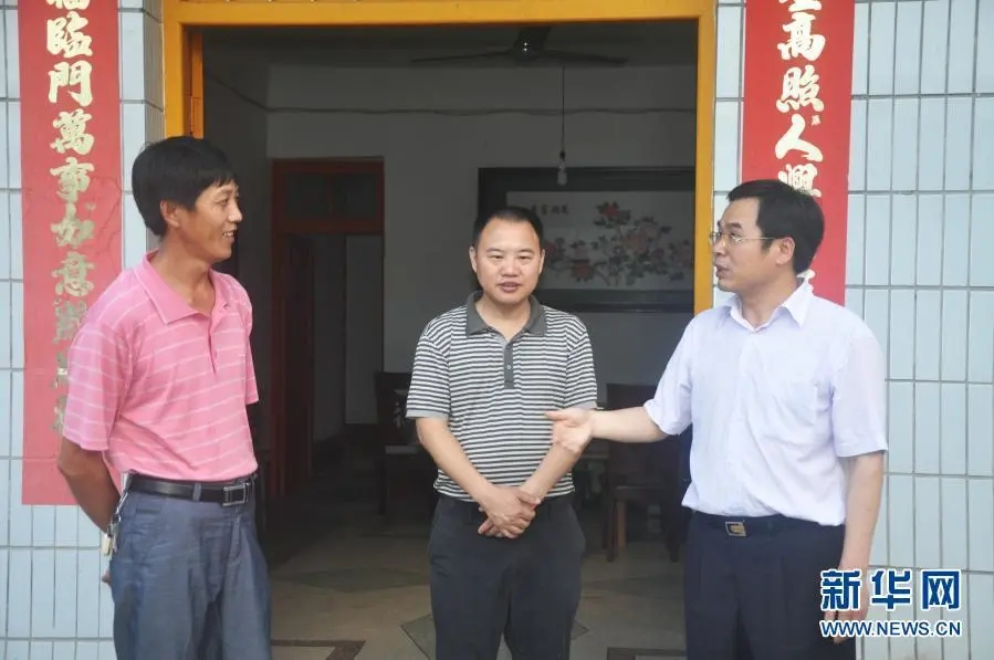 2011年7月,黄诗燕(右一)走村入户调查了解民情。新华社发