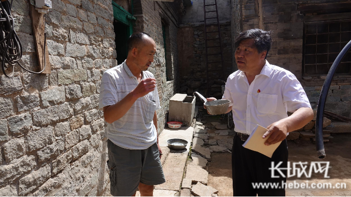 于晨光(右)入户了解饮水安全问题。王林红 摄