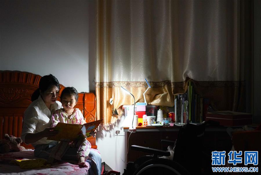 张海晶在家中给女儿讲睡前故事(5月7日摄)。新华社记者 胡晨欢 摄