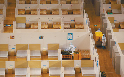 | | 8日,武汉体育中心方舱医院,贵州医疗队的叶青与康复患者分别时落泪,她试图擦拭泪水。 新华社记者 肖艺九摄 |  | | 7日,东西湖方舱医院,值勤民警向转院的最后一批患者敬礼告别。 本报记者 张武军摄 |  | | 8日,工作人员在已清空的武汉体育中心方舱医院里清理消毒。 柯 皓摄(影像中国) | 3月7日下午3点14分,武汉市东西湖方舱医院门口,载着59名新冠肺炎患者的两辆大巴缓缓启动,宣告武汉首批最大规模方舱医院收治“清零”。民警张警星站在原地,对着远去的车辆敬了一个礼。 位于武汉客厅的东西湖方舱医院,是武汉市最早征用改建的方舱医院之一,由武汉大学中南医院牵头3天内建成。 进入休舱倒计时,山东省援助湖北护理专业医疗队护士长唐晓培看着患者离开的舱门,喃喃地说:“他们当时就是在这个通道登记信息、办理入住的。” “期待不戴口罩与你相聚” “731、806……”7日下午2点,方舱广播在清点患者床号。记者穿过三道单开门,进入方舱内部。转去雷神山医院的患者在此集中。4个小时前,最后一批25名患者治愈出舱。 “希望能快点健康回家。”64岁的患者李腊梅打扮得很精神,在医护人员帮助下打包行李。“大家对我这么照料,有些舍不得。” 9岁的俊叶2月19日和家人一起进舱,是舱内年龄最小的患者。“在这吃得蛮好,今天大人好像比平时开心一点。”俊叶说。 3月1日,C区床位清空。5天后,A区剩余20名患者转到B区,清舱节奏加快。“看到病人好转是最开心的事。”现场一位医护人员说。 据了解,东西湖方舱2月7日开舱,累计收治患者1760人,治愈患者868人。 宁夏援鄂护理医疗队护士侯月珍说,前两天治愈出舱的患者黄玲已经成了她的姐妹。“黄玲和丈夫、女儿分住在方舱不同区,身体难受、心里牵挂,刚来时总偷偷流眼泪,我就多关心多安慰她”。黄玲是武汉最早抢救新冠肺炎患者的医护人员之一。没多久,侯月珍就接到了黄玲的报喜微信,“转阴了,期待不戴口罩与你相聚。” 此刻,在场医护人员守候在离去通道的一侧,每个人都能说出一两个这样的故事。 唐晓培背着一个自制的紫色布袋,里面装着送给出舱患者的中药香囊,写着“平安”二字。“2月9日我们山东队开始上岗,今天荣幸地守了最后一班。”她说,有患者走近观察她的眼睛,说要记住她是姐姐还是妹妹。 “开舱。”下午3点10分,患者排队走出舱门,时不时听到“谢谢”“加油”。一位穿着橘红色外套的患者说,“今天穿了春天的颜色。” “比平时更忙,但心里高兴” 下午4点26分,记者收到方舱民警杨艾兵的微信,“我们到了。”方舱剩余59名患者已经转往雷神山医院。杨艾兵负责1号车患者,“比平时更忙,但心里高兴。” 24岁的杨艾兵是武汉市公安局东西湖区分局巡警大队的辅警,2月25日作为第二批执勤警力进入方舱轮换。他对一位陈姓患者印象深刻,“他拉着我的手说‘你们对我真好’,但我们只是做了件小事”。杨艾兵了解到这名患者有糖尿病不能吃甜食,就及时为他更换食谱,并统计了舱内哪些患者有特殊饮食需求。 “方舱民警工作内容很细致。”东西湖区分局政治处民警董宏祥告诉记者,“我们想把舱内打造成临时生活社区,患者就是居民,大家都是邻居,有需求就找警察帮忙。” 记者看到,舱内装饰很温馨。墙上贴着一封封手写的感谢信,还有不少励志的漫画标语。 负责护送患者的方舱护理部人员张小敏,正和雷神山医院的工作人员交接转院事宜。“第一批入住患者名单就是我整理的,要有始有终。”张小敏是中南医院的一名护士,开舱第一天从下午4点忙到第二天凌晨3点,一个月来已经参与过2次大批量患者转运工作。“相处久了和患者很亲近,他们平安,我才放心。”她说。 更多方舱医院完成使命 舱外,药房的医护人员正在对医疗物资进行最后一轮盘存,要在休舱前完成这项工作。“我们2月4日就进舱了。”26岁的刘朋说,很长一段时间,要从早上8点忙到深夜2点,“来了就要干好”。 方舱门口搭建的帐篷前,标注着“护理部”“院感部”等,其中有一间叫“指挥部”,3月8日上午,方舱各部门负责人在此例行开了晨会,出舱患者的情况跟进与后续工作部署,一步都不能落下。 最初的场景仍历历在目—— 2月4日,武汉公布改建武汉客厅为东西湖方舱医院,同一天,中南医院副院长章军建紧急调任东西湖方舱医院院长。没有可借鉴经验,大家只有一个目标——将一个1.6万平方米的空旷展厅,改建成收治2000名患者的医院。 3月8日中午12点,东西湖方舱医院正式休舱。据了解,截至3月8日下午,武汉已有11家方舱医院休舱,患者陆续分流到定点医院,剩余方舱医院累计在院患者还剩100多人。 (部分患者名字为化名)
