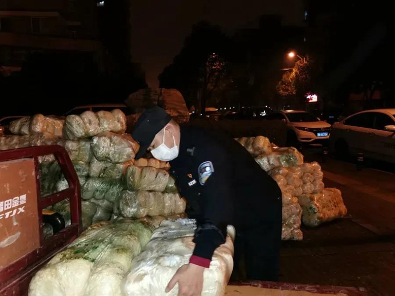 沈胜文连夜帮助转运居民所需物资。图片来源:法制日报