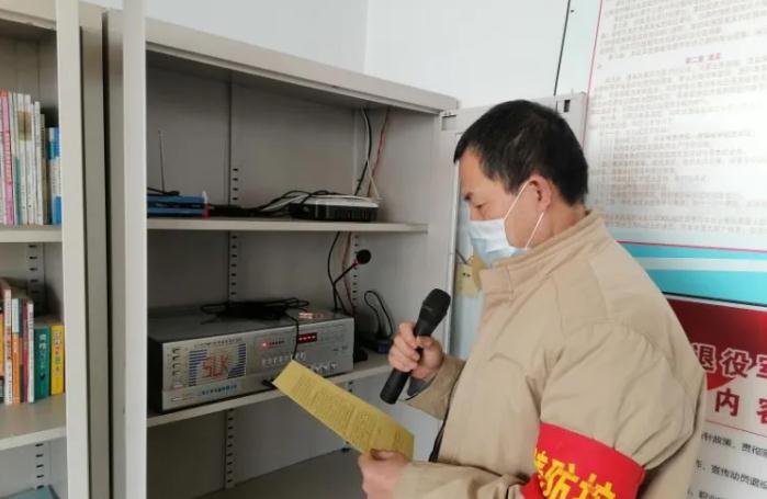 孙国亮在村广播室进行疫情防控播音。图片来源:河北文明网
