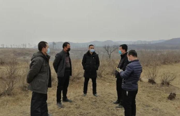 孙国亮(左一)和乡领导、村干部在实地查看申报养鸡项目场地。图片来源:河北文明网