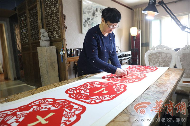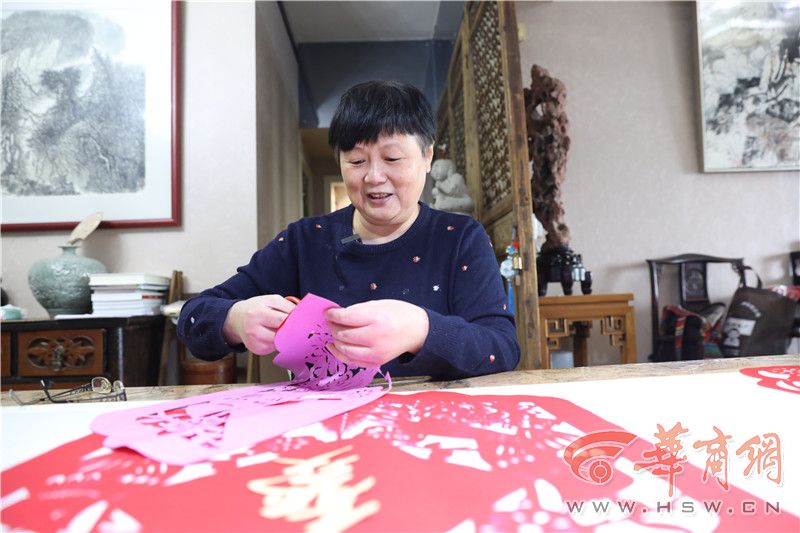 虽然已经60岁,但雷俊时常还会超负荷工作。15日上午,华商报记者见到雷俊时,她正在整理刚刚完成的一副剪纸。五个字由五幅剪纸画组成,每幅剪纸上面都有喜鹊、大雁塔等赋予了特殊寓意的图案构成。雷俊表示,她凌晨五点完成这幅剪纸后,才休息了几个小时。对自己熬夜剪纸工作这件事,她似乎已经习以为常。