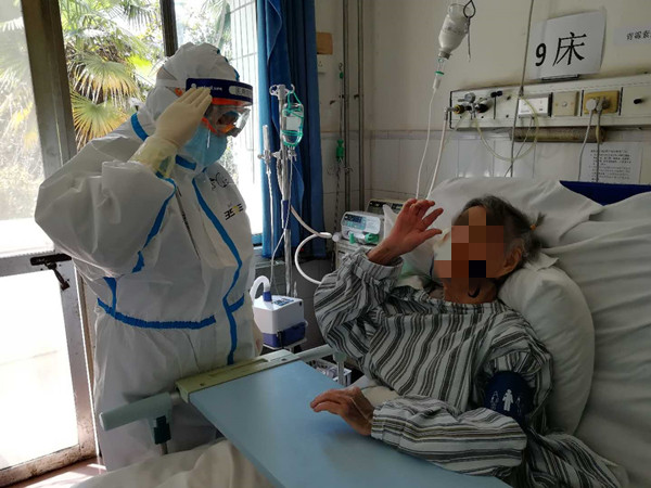 除了每天紧张的技术性操作外,ICU里的很多重症患者都是八十岁以上的老年人,其中一位便是87岁的抗美援朝老兵。由于家人不在身旁,经常不配合吃饭、吃药、吸氧,宋青和同事们想了很多招。“我们的护士不断地安抚、聊天,哄着她、摸着她的手,说这是专门给她的药。后来我知道了她是抗美援朝的老兵,激动地给她敬了个礼。我告诉她自己的母亲也参加过抗美援朝,等她好了就和我的母亲通电话。两行热泪顿时从老兵眼角流了下来,当时的我也感受到深受大疫之灾的武汉人民听到这句话激发出多大的精神力量啊!”宋青回忆到。
