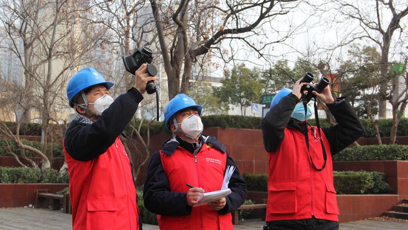张涛(中)和同事一起巡视城区线路。图片来源:淮北文明网