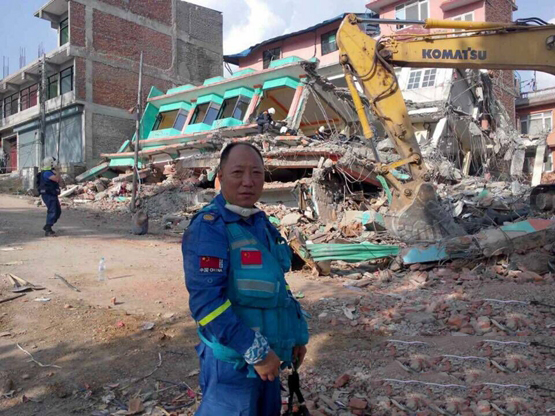 王东升在尼泊尔地震灾区参与救援。图片来源:河北文明网