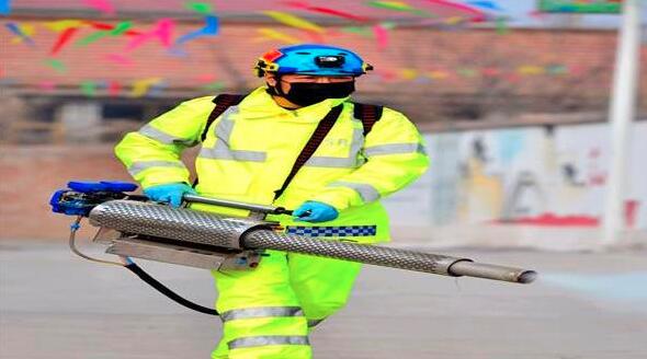 王东升用弥雾机做好消杀工作。图片来源:河北文明网