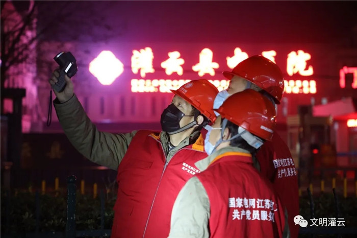 国网江苏电力开山岛共产党员服务队队员为县中医院提供电力保障。图片来源:灌云文明网