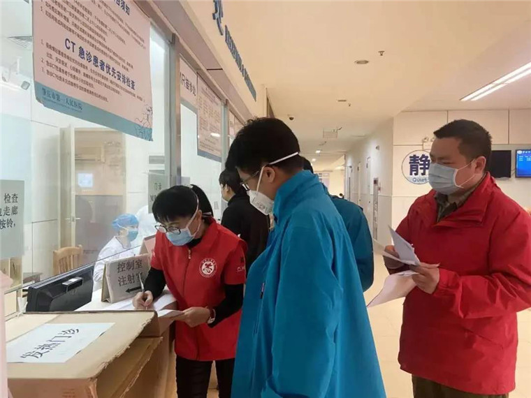 李肇殷(左一)参与协助援鄂医务人员体检志愿服务活动。图片来源:肇庆市西江社工服务中心