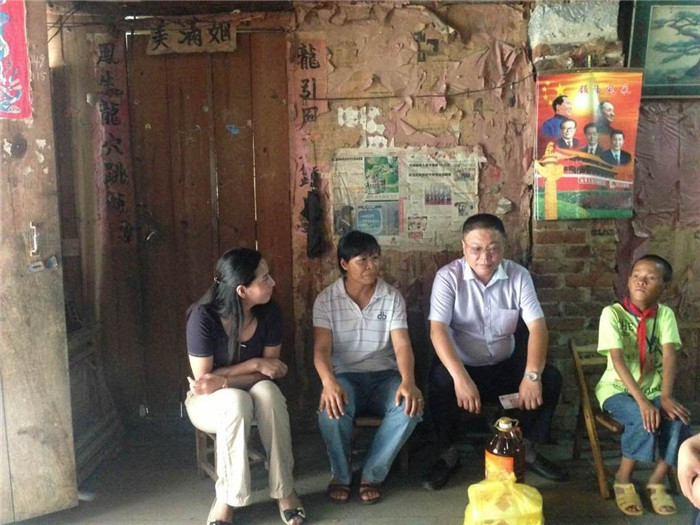 疫情之前,侯先栋(右二)走访困难学子家庭。图片来源:泰州文明网