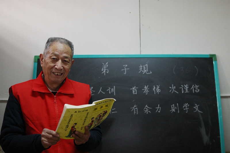 何兴让参加少儿经典诵读培训班公益活动。图片来源:蒙城县文明办