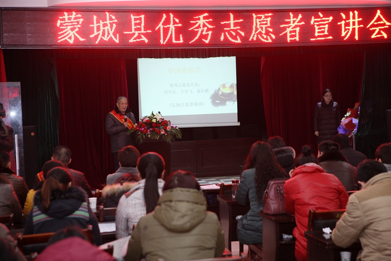 何兴做优秀志愿者事迹宣讲。图片来源:蒙城县文明办