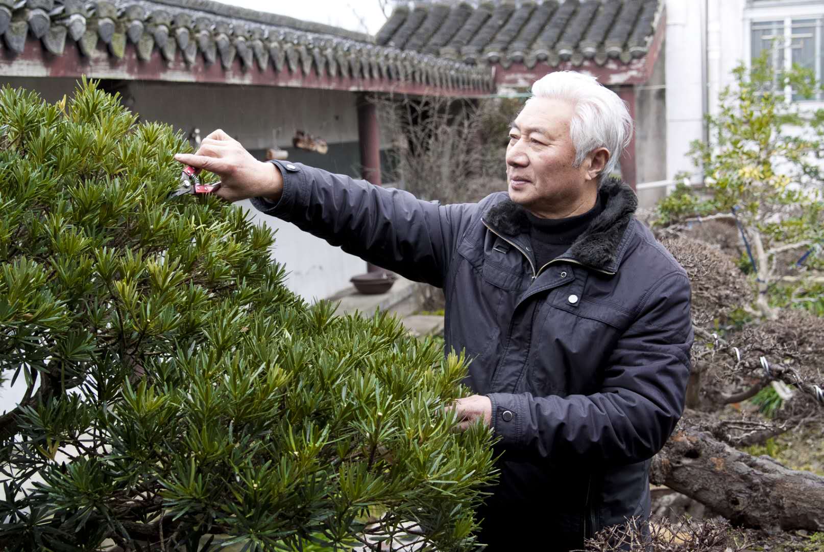 为了省下一笔笔费用,悟园里的花草树木都是袁金华亲自精心培育,大到地栽树木的修剪,小到盆景的栽培。地面上的地砖,是他从拆迁户家买来一块块铺成的,油漆也是他一刷子一刷子刷上去的。