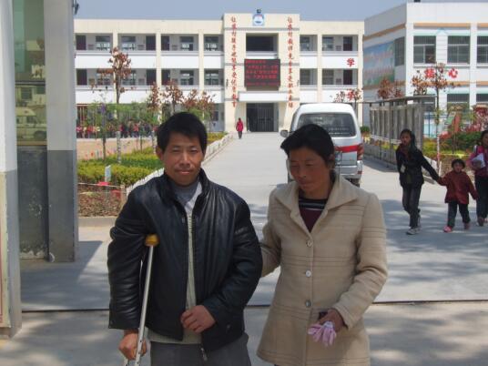 康复中的朱士领(左)时刻挂念学生经常回学校走动。图片来源:宿迁文明办