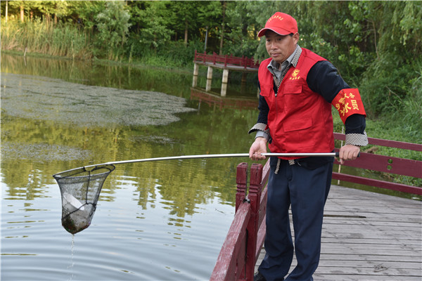 朱士领志愿参加乡贤护碧水。图片来源:宿迁文明办