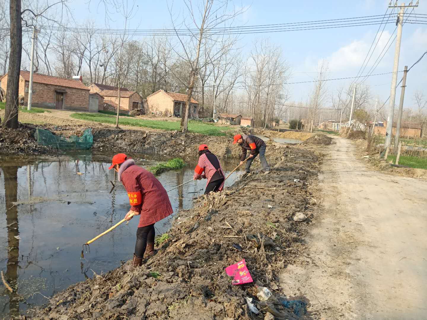 乡贤协会成员清理河塘垃圾。图片来源:宿迁文明办