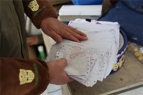 多年来周维忠代交电费的发票厚厚一叠。资料图片