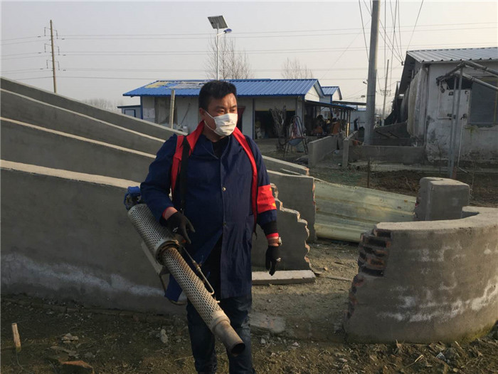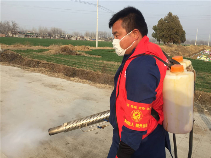 “我是党员,疫情来了,应当冲在第一线。”疫情发生后,王春河找来一台喷雾机,自费买来消毒剂,从1月23日到3月初,天天为全村村民消毒,村里500户人家,他每天都跑个遍,扛着消毒雾气炮,在垃圾桶、公厕、杂物堆等进行消毒。