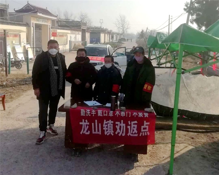 王春河(左一)坚守防疫一线。图片来源:亳州文明网