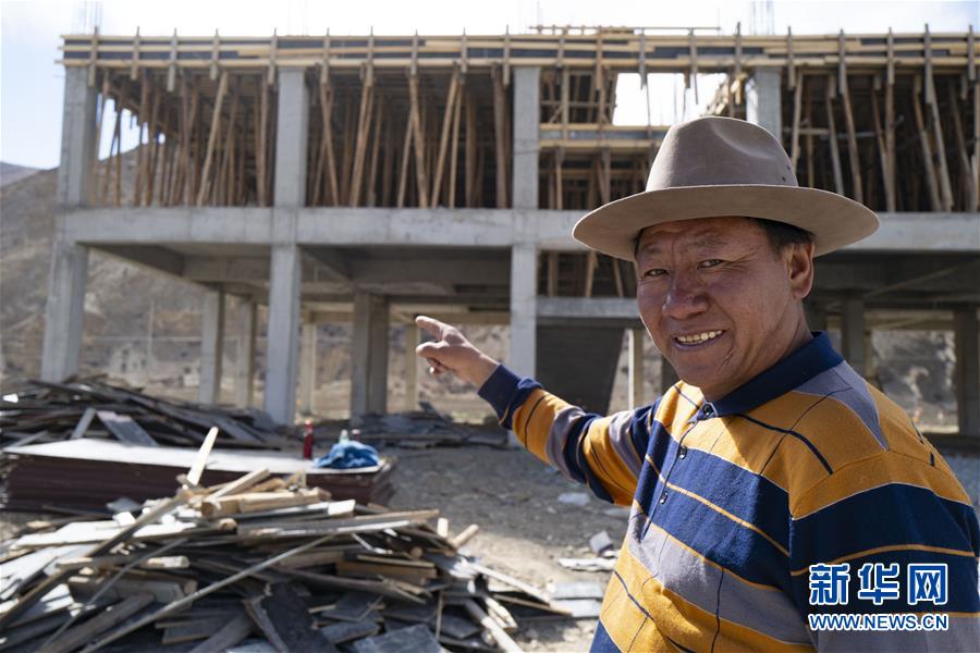 “牛头旅馆”老板多吉在新盖的旅馆监工(5月17日摄)。新华社记者 普布扎西 摄