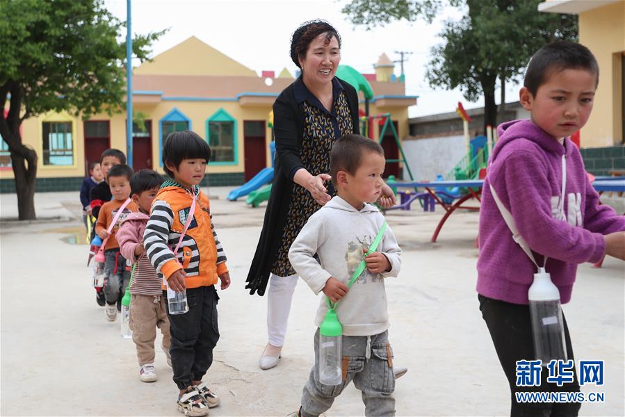 6月1日,乔鲁小学校长唐金海在整理学生队伍,引导学生排队打水。西北乡村的一座山头,孤零零地伫立着一所小学。学校名叫乔鲁小学,位于甘肃省临夏回族自治州东乡族自治县大树乡,始建于1963年。校长唐金海和妻子马翠花都是全科教师。夫妻俩来到乔鲁小学后,一待就是15年。在当地政府的支持下,夫妻俩不断努力,推动了控辍保学、净水计划等政策在乔鲁小学一一落实。如今,学校面貌发生了翻天覆地的变化。目前,学校共有4个教学班,在校生63人,教职工6人。最初的三间破旧教室变成了两栋教学楼;学校女学生从最初只有2名到如今的35名,占在校生一半以上。如今,他们依然坚守,步履不停。他们只有一个心愿:“孩子们好好学,早日走出大山!”近年来,东乡族自治县积极落实国家政策,着重推进控辍保学、“东乡女童希望工程”等工作,并积极加强教师队伍建设,有力提升当地教育教学质量。新华社发(马希平 摄)