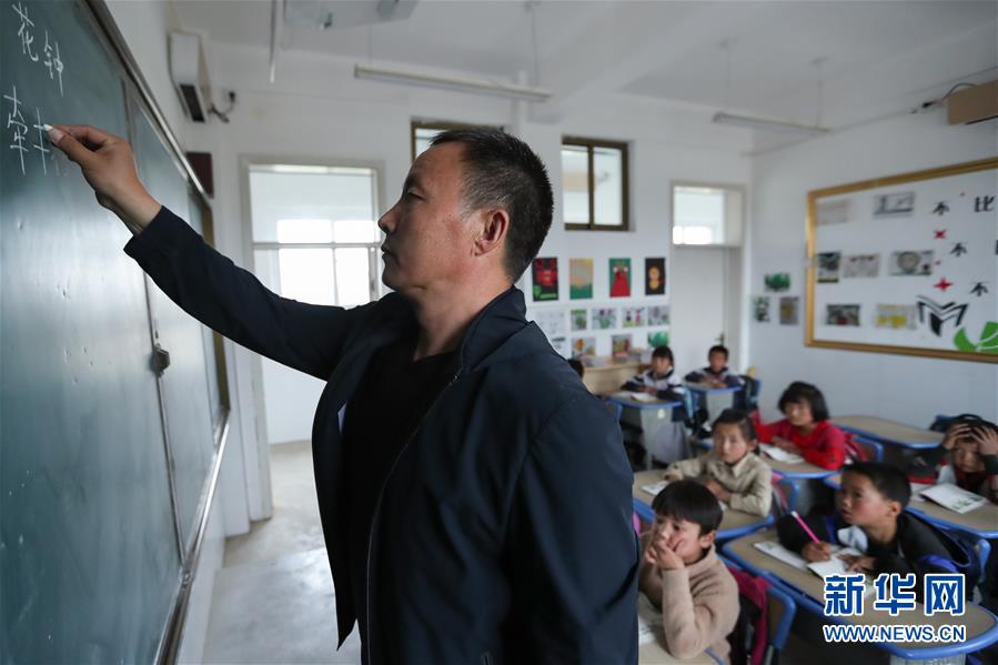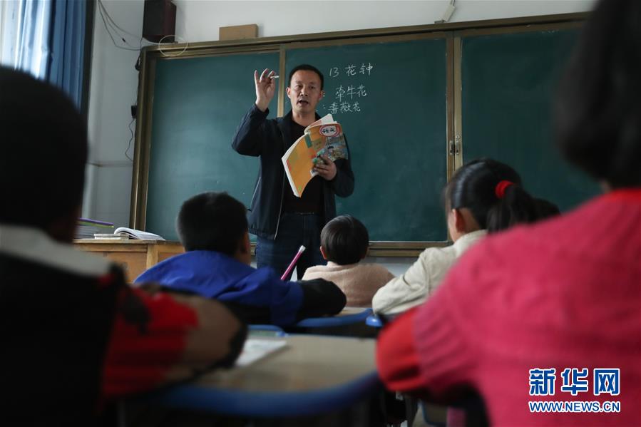 6月1日,在乔鲁小学三年级教室,唐金海给学生上课。