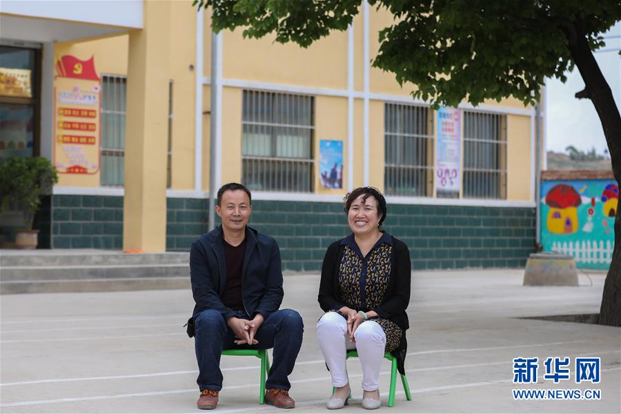 这是6月1日马翠花(右)和唐金海(左)在乔鲁小学院子里拍摄的合影。