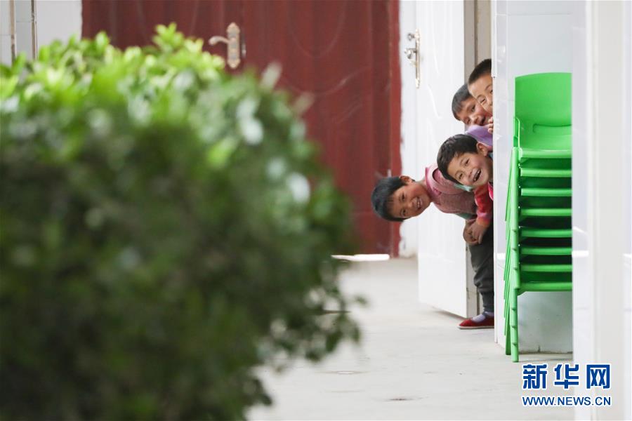 6月1日,在乔鲁小学,放学时孩子们探头玩耍。