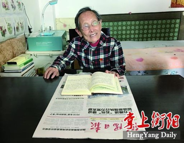 黄厚瑜老人每天都要读书看报,还不忘作学习笔记。图片来源:掌上衡阳客户端